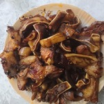 Как только оттенок становится аппетитно-коричневым мы поливаем жидким дымом, перемешиваем, потом соусом чили и соевым! Вообще ориентируемся по своим вкусовым ощущениям, я люблю посолонее, поэтому соевого соуса немного побольше наливаю, около 5 столовых ложек. Постоянно перемешиваем, так как могут начать "стрелять"