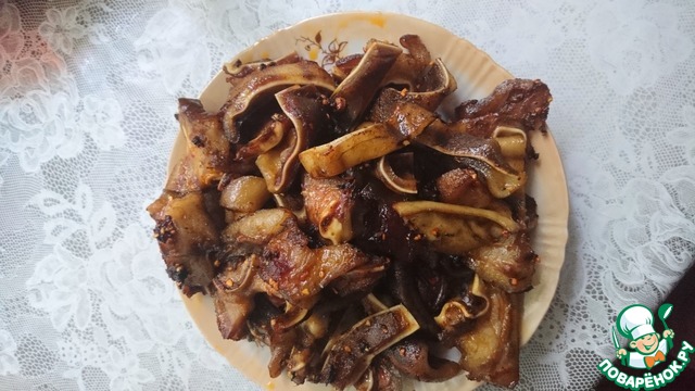 Рецепт «Копчёные ушки с соусом барбекю»: