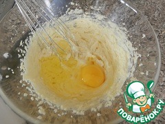 Масло комнатной температуры взбить с сахаром до белой пышной массы. Яйца ввести по одному, каждый раз взбивая массу до однородности на невысокой скорости.