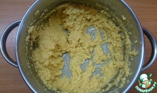 Постепенно всыпаем муку, постоянно помешивая. Я это сделала миксером.