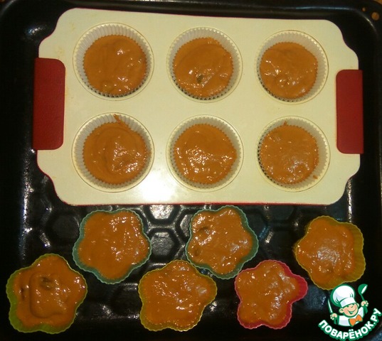 Тесто распределить по формочкам для маффинов или кексов. Выпекать в разогретой до 180 градусов духовке 25 минут.