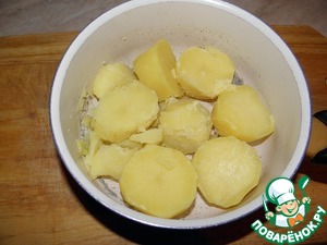 Затем разминаем толкушкой, вливаем кипяченое молоко (или сливки), добавляем сливочное масло и еще раз разминаем (миксер и блендер) не используем!