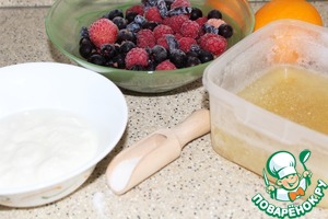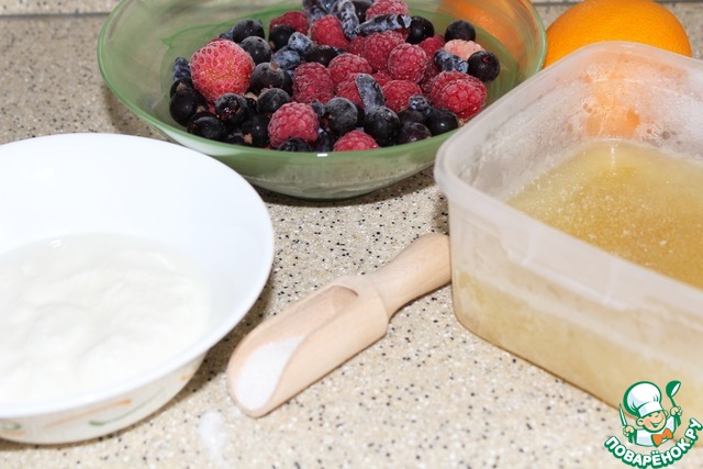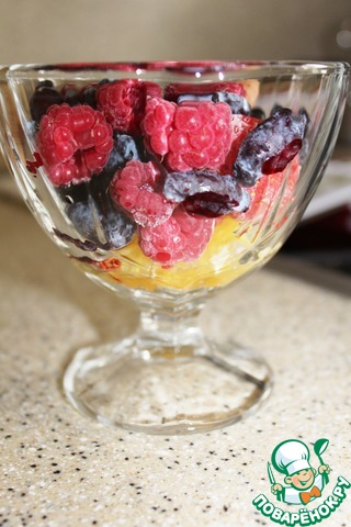 Для десерта понадобятся ягоды, апельсин, ананасовый сироп заморозить накануне.