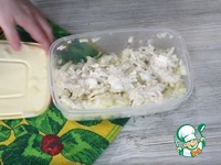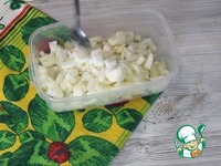 Складываем в контейнер, солим. Закрываем контейнер и хорошо потрясем. Оставляем на 5 минут. |
