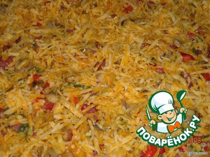 • Через 15 минут достаем, обильно посыпаем сыром и опять в духовку на 3 мин.