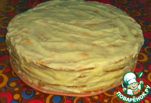 Из серии "Медовых тортов" я пекла много "Медовиков", "Рыжиков" и ещё чего-то такого оранжевого, но этот рецепт "не оказался хорошим". Он оказался Превосходным. Точнее сказать Сказка. Тесто мягкое, хорошо рассказывается, тонюсенькие, не липнет к рукам или к поверхности силиконового коврика. Коржи хрупкие, воздушные. Пекутся быстро, равномерно, не пригорают. Правда первый корж у меня прилип к противню, хотя поверхность противня я посыпала мукой. Тогда я стала их печь на пергаментной бумаге. Вытаскивала коржи и не переставала Вас благодарить. Мысленно.