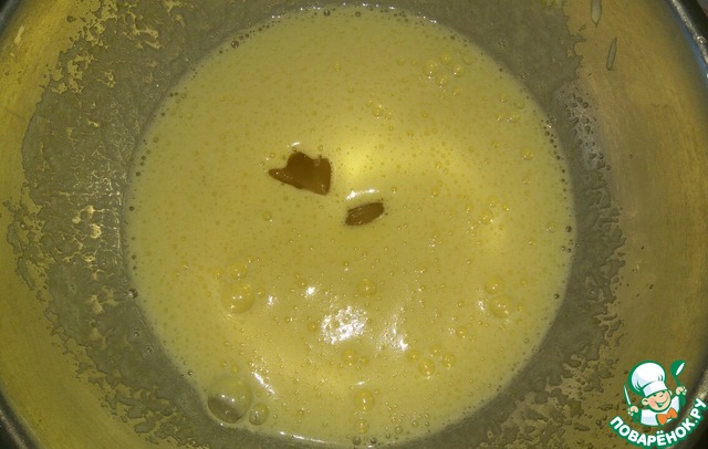 Поставить яичную смесь на водяную баню, чтоб кипящая вода в нижней кастрюле не доставала дно миски со смесью. На среднем огне помешивать, пока масса не увеличится вдвое.