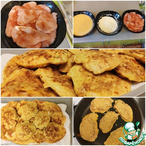 Рецепт «Куриные отбивные в сырно-луковом кляре»: