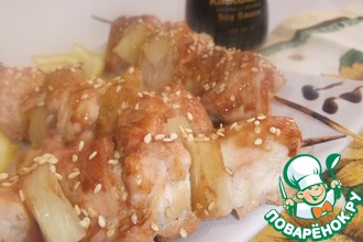 Рецепт «Сувлаки из куриной грудки с беконом»: