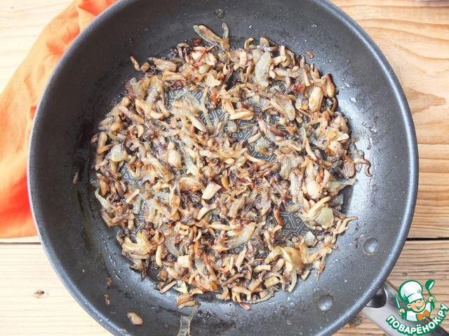 Всыпаем на разогретую сковороду с растительным маслом, обжариваем, выпариваем лишнюю воду.