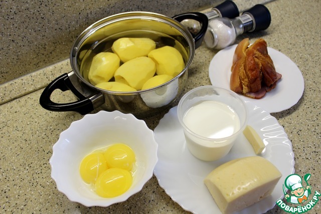 Ингредиенты для «Пирог с картофелем, беконом и сыром»: