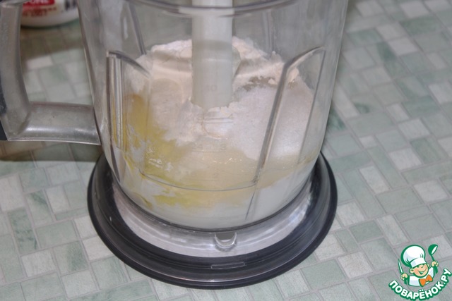 Перемешать в блендере муку, кефир, яйцо, растительное масло, сахар, разрыхлитель, пищевую соду и соль до однородности.