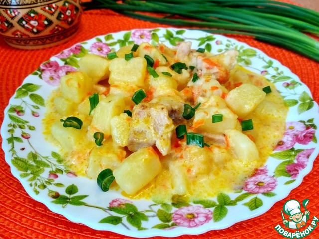 Ингредиенты для «Картофель с курицей в сырном соусе»: