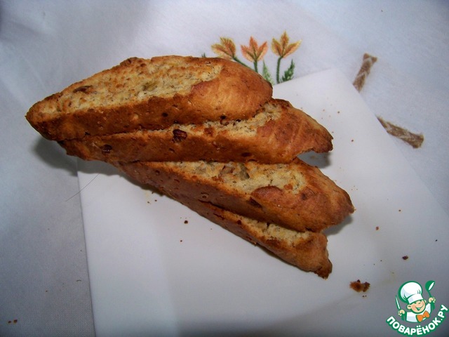 Бискотти во второй раз необходимо выпекать совсем немного, чтоб внутри они остались мягкие, а снаружи были немного подрумяненые.