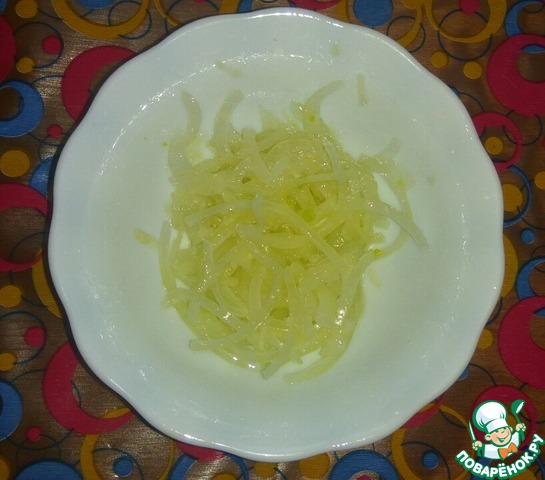 Лук нарезать тонкими полукольцами. Чеснок измельчить. Соединить в пиалочке 2 ст л оливкового масла, нарезанный лук и чеснок.