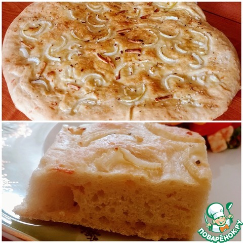 Рецепт «Сырная фокачча с луком и чесноком»: