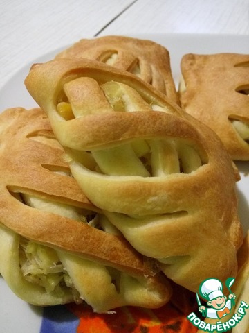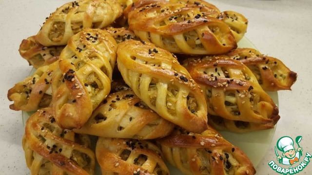Не все хозяйки "дружат" с дрожжевым тестом. А иногда на него просто нет времени. Тогда этот рецепт - настоящая находка. Быстро, вкусно, ну и оригинально. Начинка может быть любой. Она не должна быть жидкой. В этом варианте капуста с яйцом. С яблочками тоже хорошо. Так что приглашаю покреативничать!
