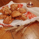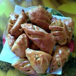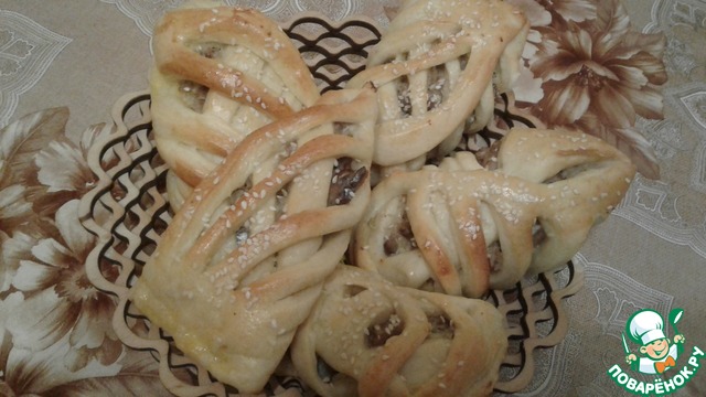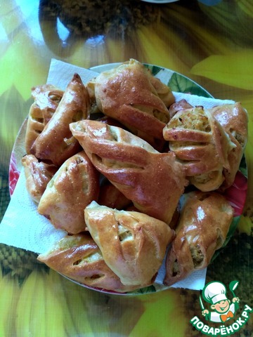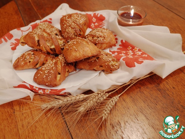 И ещё, я немного изменила форму - низ сщипывала в одну точку, а не плоско. Получились очень симпатичные шишечки.. или листики)) И немного посыпала для контраста еще и чёрным кунжутом. Следующие сделаю с яблочной начинкой, должны получиться супер!)) Спасибо автору за рецепт и новую форму (для меня)) изготовления пирожков!