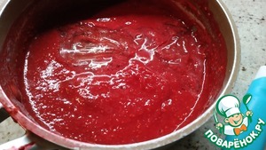 Рецепт «Шоколадный пудинг с малиновым компоте»: