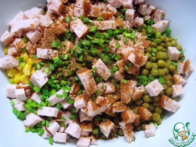 Простой и сытный салат с фасолью, горошком, кукурузой и копченой куриной грудкой! Приготовление салата не займет много времени, а салат станет хорошим дополнением к обеду или ужину!