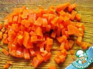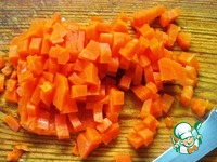 Заранее отваренную морковь нарезать небольшими кубиками. |