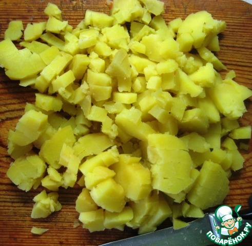 Так же нарезать отваренный картофель. |
