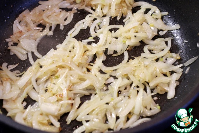 На горячей сковороде в растительном масле ( 2 - 2,5 ст. л.) поджарить до красивого румянца лук. Убрать его в другую посуду.