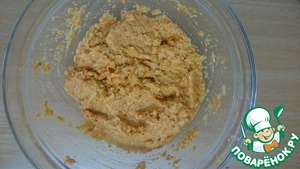 Измельчаем блендером обжаренные лук с морковью и яичные желтки.