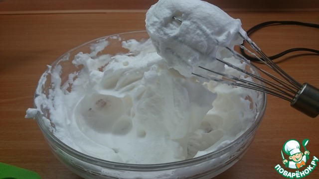 В белки добавляем щепотку соли и взбиваем до устойчивой пены.