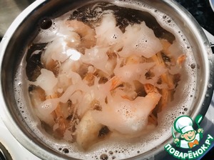 Отвариваем рис, как указано на упаковке. Надо расчитывать количество продуктов на свою семью. Я готовила на 6 человек, риса получается отваренного много.