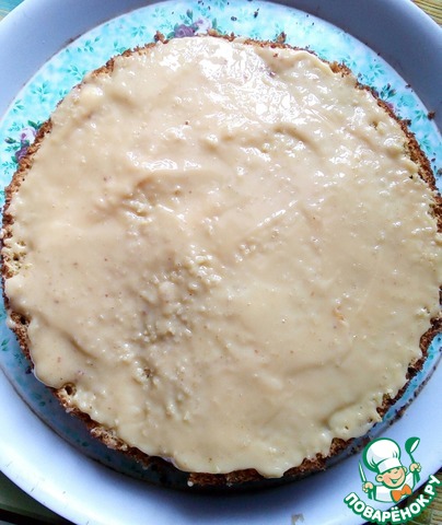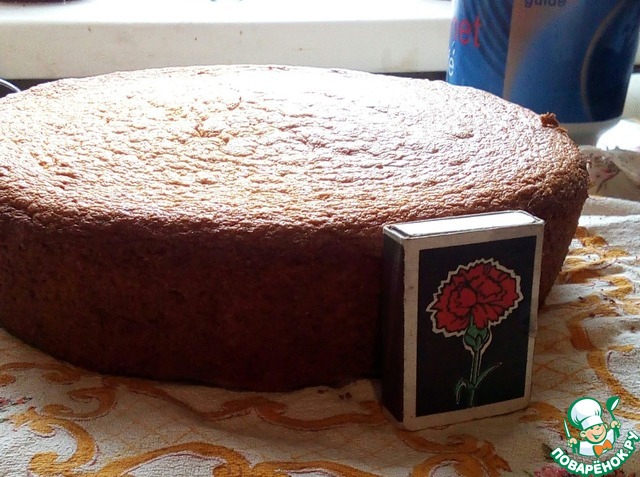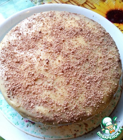 Мы любим влажные торты. Поэтому я пропитала коржи медовой водой и смазала вареной сгущенкой.