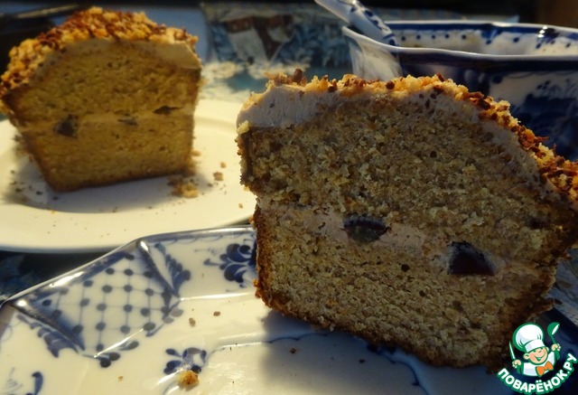 Второй корж поднялся выше формы, был воздушным, такой вариант мне понравился больше.
