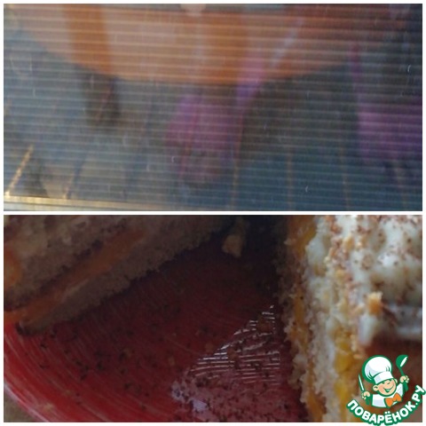 Дальше я переворачиваю форму с бисквитом вверх дном на решетку ( я ставлю на решетку от микроволновки) и таким образом дать полностью остыть. -