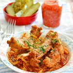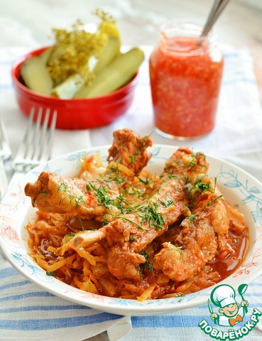 Эти ребрышки я готовлю всю зиму, пока в холодильнике есть квашеная капуста. Сочные свиные ребрышки в пряностях, тушеные длительное время с двумя видами капусты: свежей и квашеной, в яблочном соке. Достаточно просто, но невероятно вкусно! Готовить можно сразу большую порцию, остатки прекрасно замораживаются, а после заморозки блюдо становится только вкусней. Пряности можно подобрать по вкусу, и тушить можно только на сковороде, не запекая в духовке. Но настоятельно советую приготовить точно по рецепту, не пожалеете! Рецепт Виктории Попин.