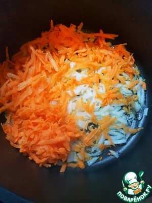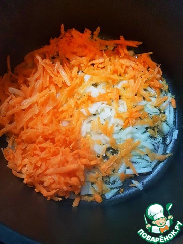 В кастрюле с толстым дном на растительном масле обжарить морковь и лук.