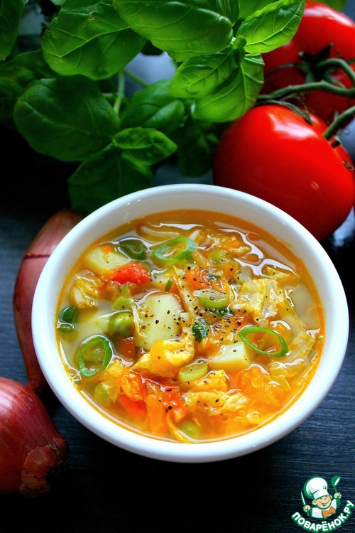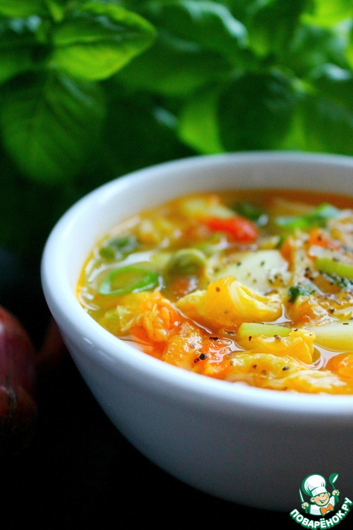 Хочу предложить вам суп из пекинской капусты с зелёным горошком. Прекрасный вариант для тех, кто держит пост или на диете. Лёкгий, сытный и очень вкусный.