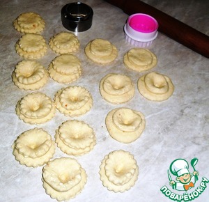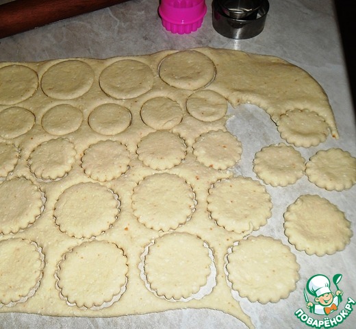 Теперь из теста нужно сформовать печеньки, для этого я взяла кондитерские вырубки, а можно нарезать на равные квадратики, треугольники или полоски, главное - количество печенек должно быть парное.