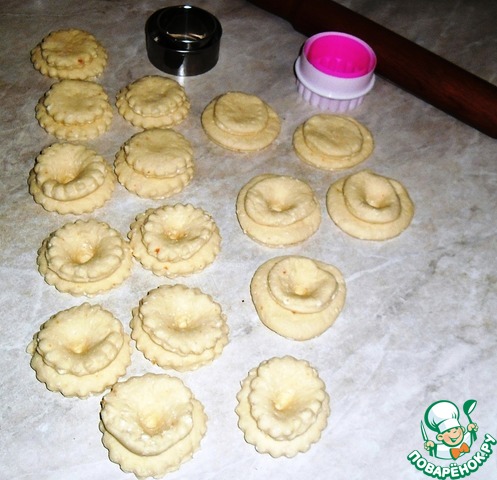Складываем по две штучки слегка придавив. Круглые печеньки можно скрепить, вдавив пальчиком в центре.