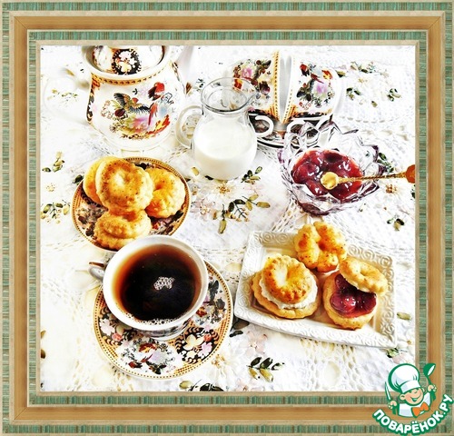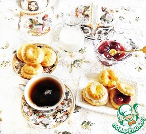 Печенье можно есть в таком виде, а можно не разрезая просто разделить на две части и смазать вареньем-джемом, сметаной, сливочным маслом, или сделать маленькие бутербродики, подавать к чаю или кофе, на ваш вкус. -