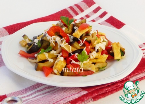Рецепт «Салат из баклажана с яичными блинчиками»: