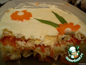 Четвёртый слой: морковь на крупной тёрке, майонез