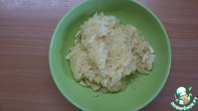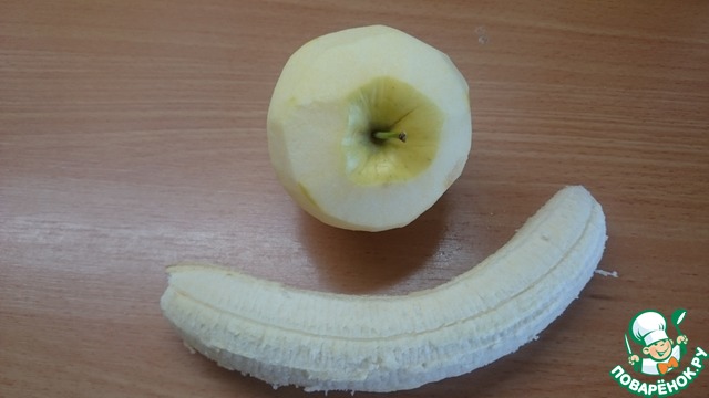 Банан разминаем вилкой, яблоко трем на мелкой терке. Перемешиваем.