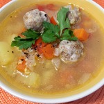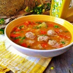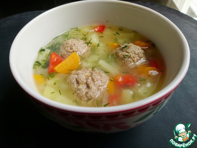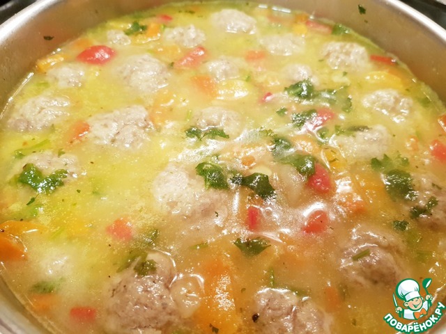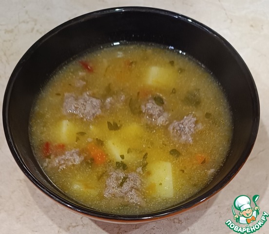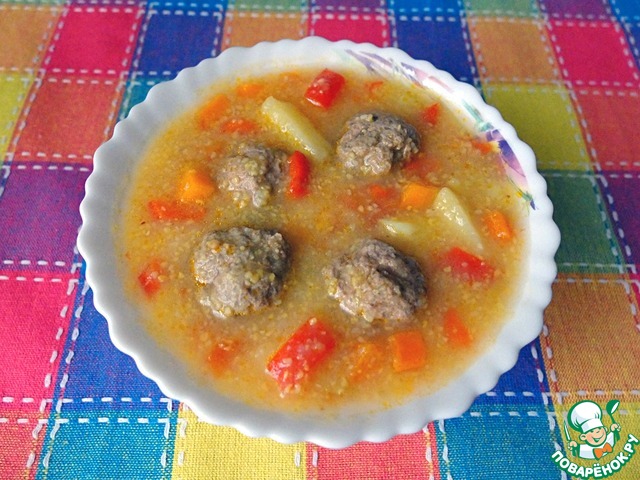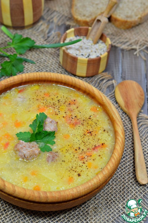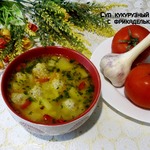Суп из кукурузной крупы и овощей с мясными фрикадельками. Сытный, густой, наваристый, насыщенный. Вкусный! А готовится этот суп просто и быстро. Попробуйте!
