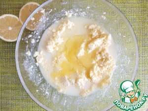 Размягченное сливочное масло, сахар, ванильный сахар и цедру одного лимона взбиваем до пышной массы.