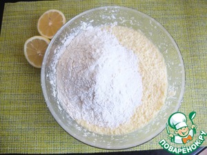 В отдельной емкости смешиваем пшеничную и рисовую муку, разрыхлитель. Соотношение пшеничной муки к рисовой 2 к 1. Думаю, если изменить их в сторону увеличения рисовой муки, то кексы нисколько не потеряют во вкусе.