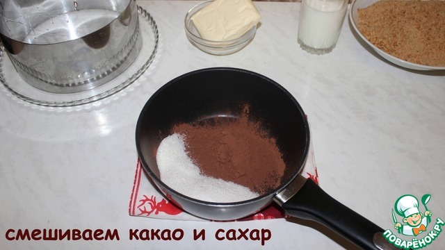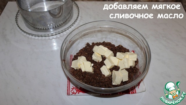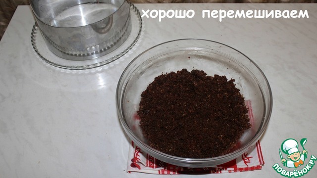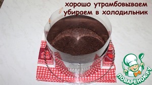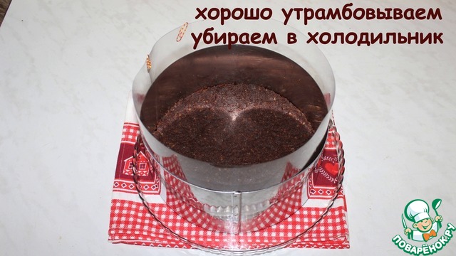 Выкладываем в форму и хорошо утрамбовываем. Убираем в холодильник, пока делаем крем.