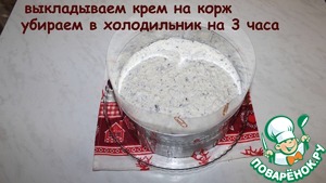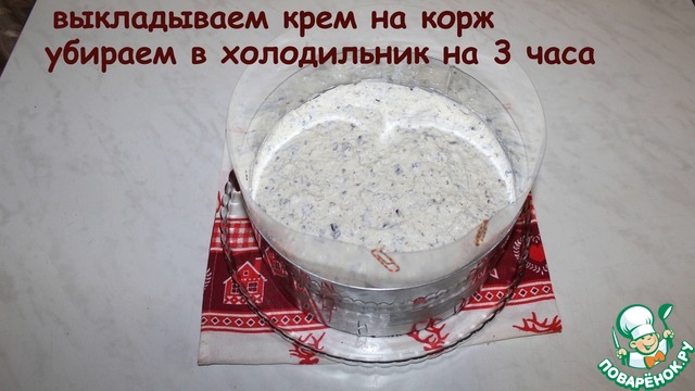 Выкладываем крем на корж и убираем в холодильник на 3 часа.