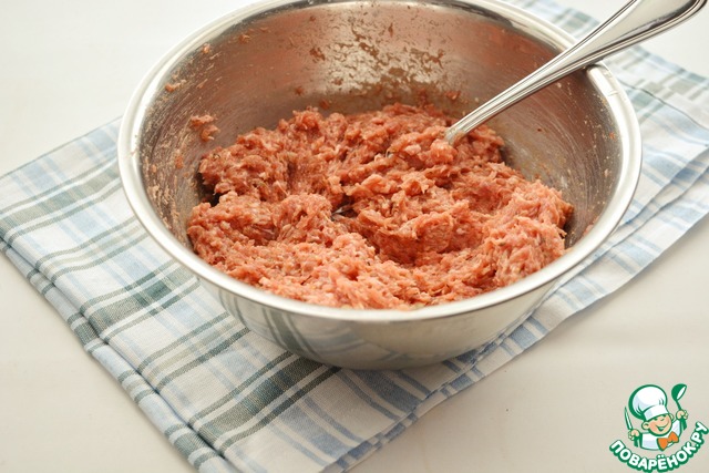 Хорошенько вымешайте фарш вилкой или руками, чтобы вся вода впиталась в фарш.