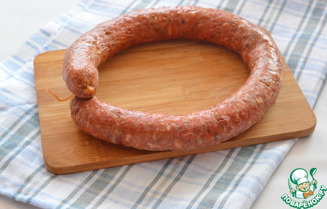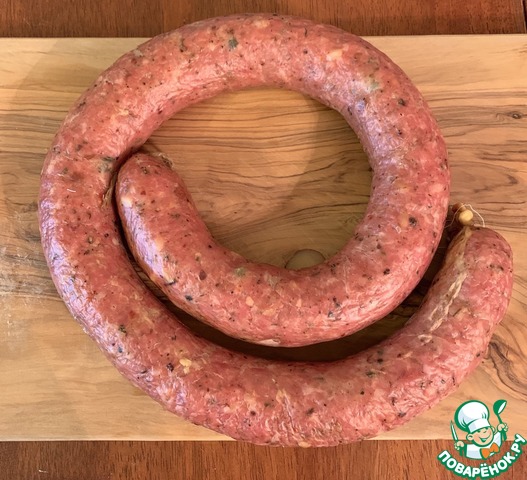 Если используете оболочку другого диаметра, то время готовности рассчитываем так: 1 минута на каждый миллиметр диаметра колбасы. Точную готовность определяйте при помощи термометра (температура внутри колбасы должна достичь 68-72°С).