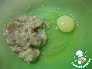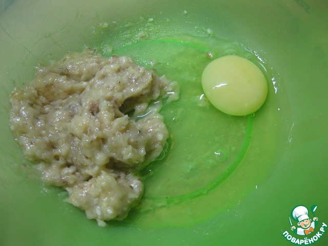 Бананы нужны очень спелые, - размять вилкой в пюре, добавить яйцо, взбить все венчиком